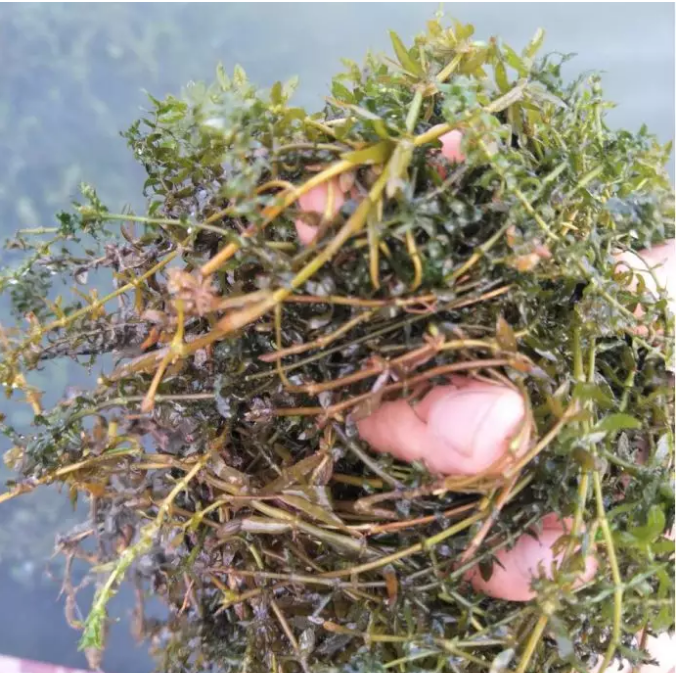 第五天,轮叶黑藻白根长出来了,水草发新头,活力恢复;小龙虾脱壳不遂的症状有所缓解。
