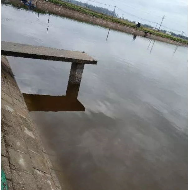 该塘为精养池,沙质膜底,基肥少且易渗水,投苗约20多天,水难肥且长清苔,用苔清1号3天后清苔明显萎缩,第四.五天连续两天用优底安及底加氧解藻毒、改底,接着增加新水约15Cm左右,用保水露、优藻2号及合生元发酵液肥水培藻,水质重新培养起来。