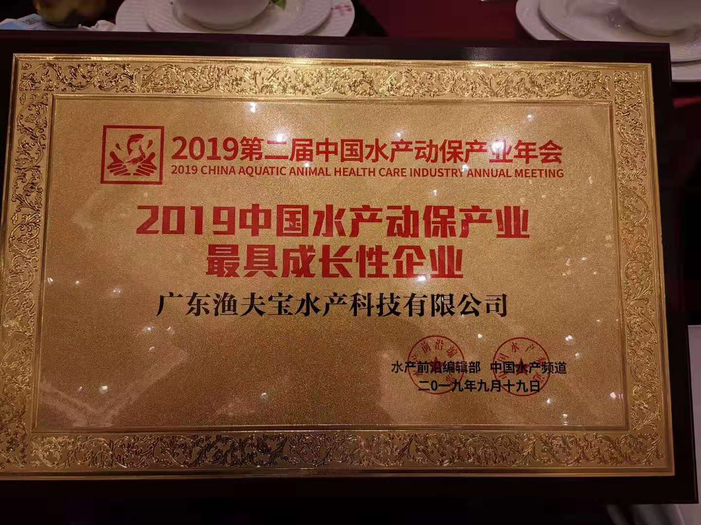 广东渔夫宝水产科技有限公司受邀参加了此次大会并荣获“2019中国水产动保产业最具成长性企业”。