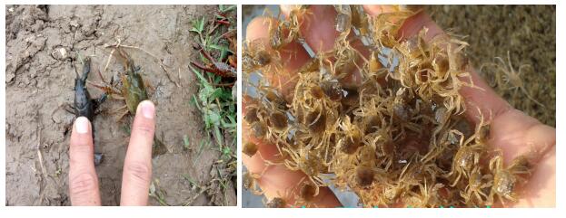 3. 虾蟹苗投放应该分散开,防止虾蟹苗初始活动力差,局部堆积密度过大,易损伤抢食争氧,阻碍正常恢复生长。
